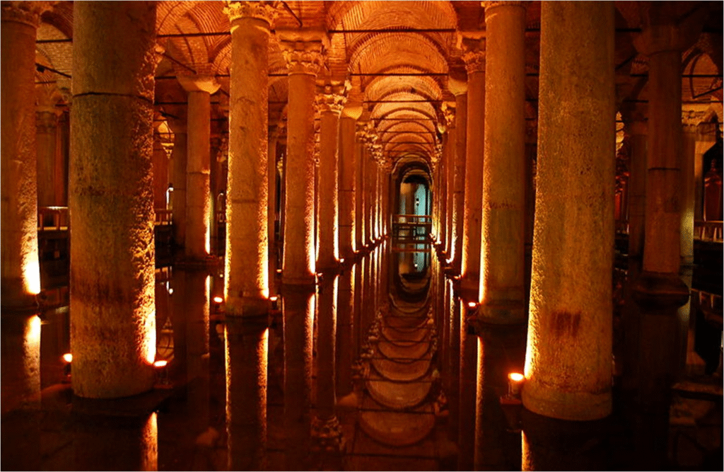 Inside, 336 marble columns, each nearly nine meters tall, form an endless colonnade. Covering about 9,800 square meters, this masterpiece once supplied up to 100,000 tons of water. Today, illuminated walkways reveal its mysterious beauty, where history, architecture, and atmosphere converge.
