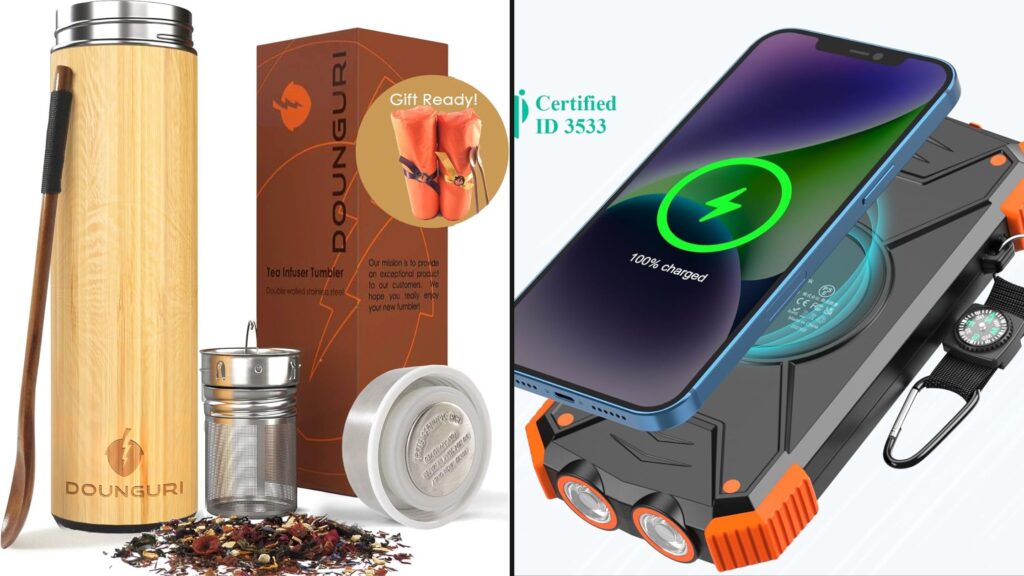 Amazon suggestions: Bamboo Tea Tumbler Mug – Solar Charger Power Bank